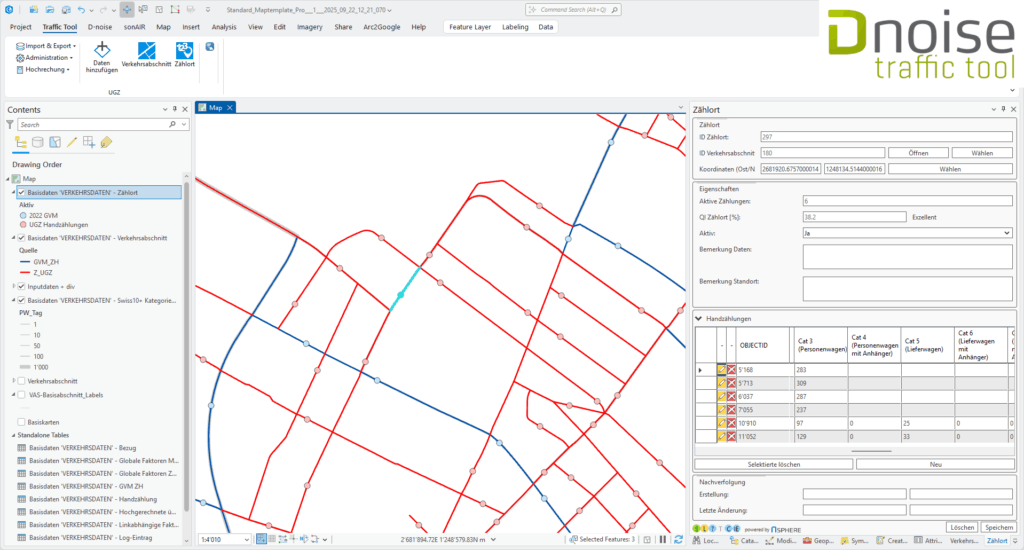 Für die Verwaltung ihres Verkehrsmodells sowie Zähldaten haben wir unser Portfolio um ein Tool für Verkehrsdaten erweitert. Grundsätzlich können Zähldaten in beliebigem Format (Nt/Nn, Swiss5, Swiss10) erfasst und verwaltet werden. Verkehrsabschnitte ohne Zähldaten können über Bezüge verknüpft werden.  Zudem können Modelldaten für MIV und MÖV hinterlegt und verwendet werden.